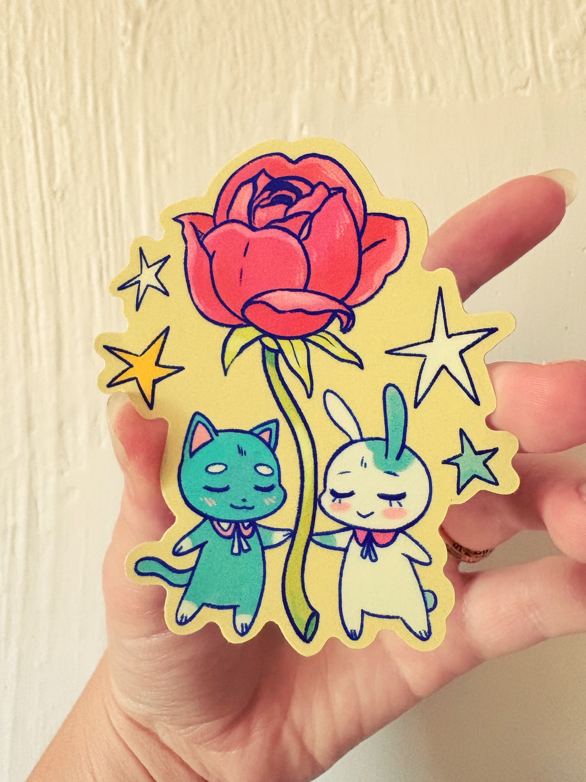 Good friends grow together! Original characters and illustration, holding love in their heart no matter where their neighbor is from. This is a waterproof, durable, and adorable 3x3 inch sticker that can withstand whatever you may put your water bottle through.